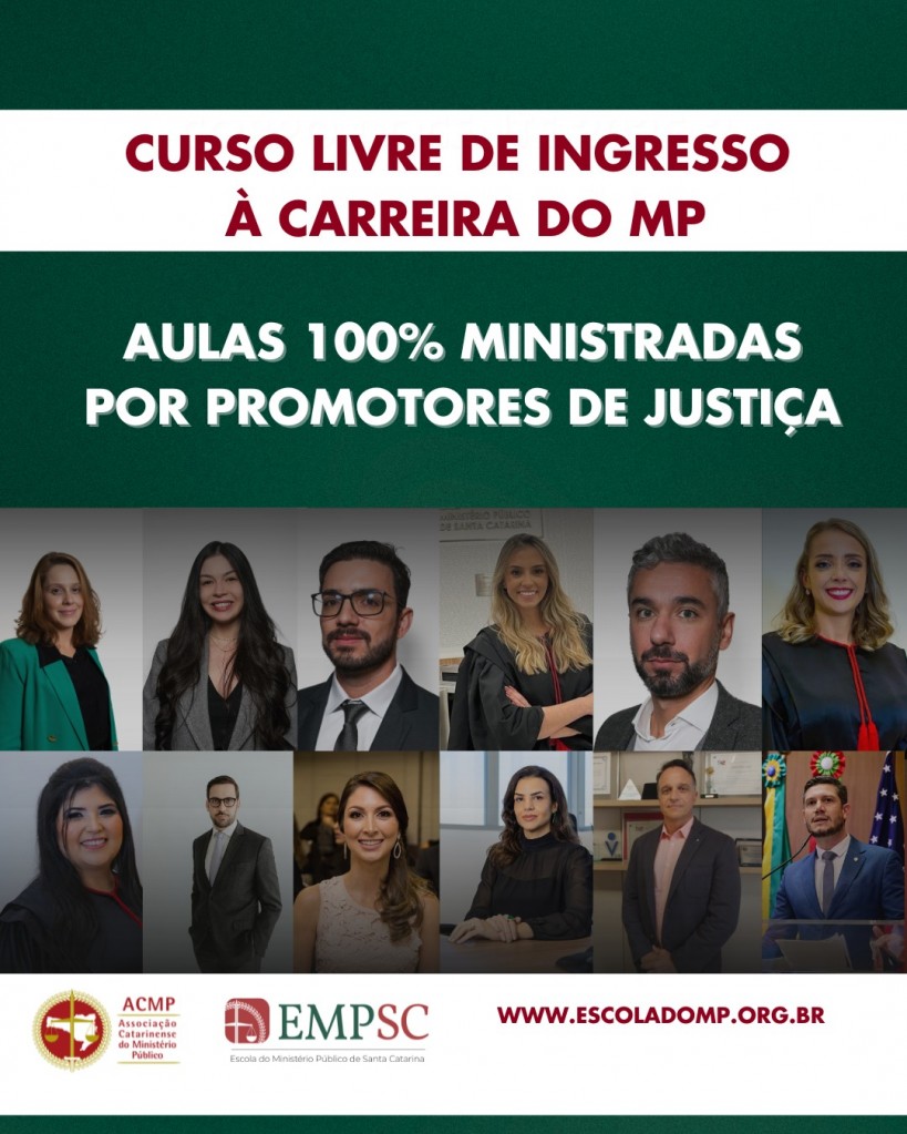 A Escola do Ministério Público de Santa Catarina (EMPSC) está com as matrículas abertas para o Curso Livre de Preparação ao Ingresso à Carreira do MP. A Turma 2025.2 terá o corpo docente formado exclusivamente por Promotores de Justiça do MPSC.